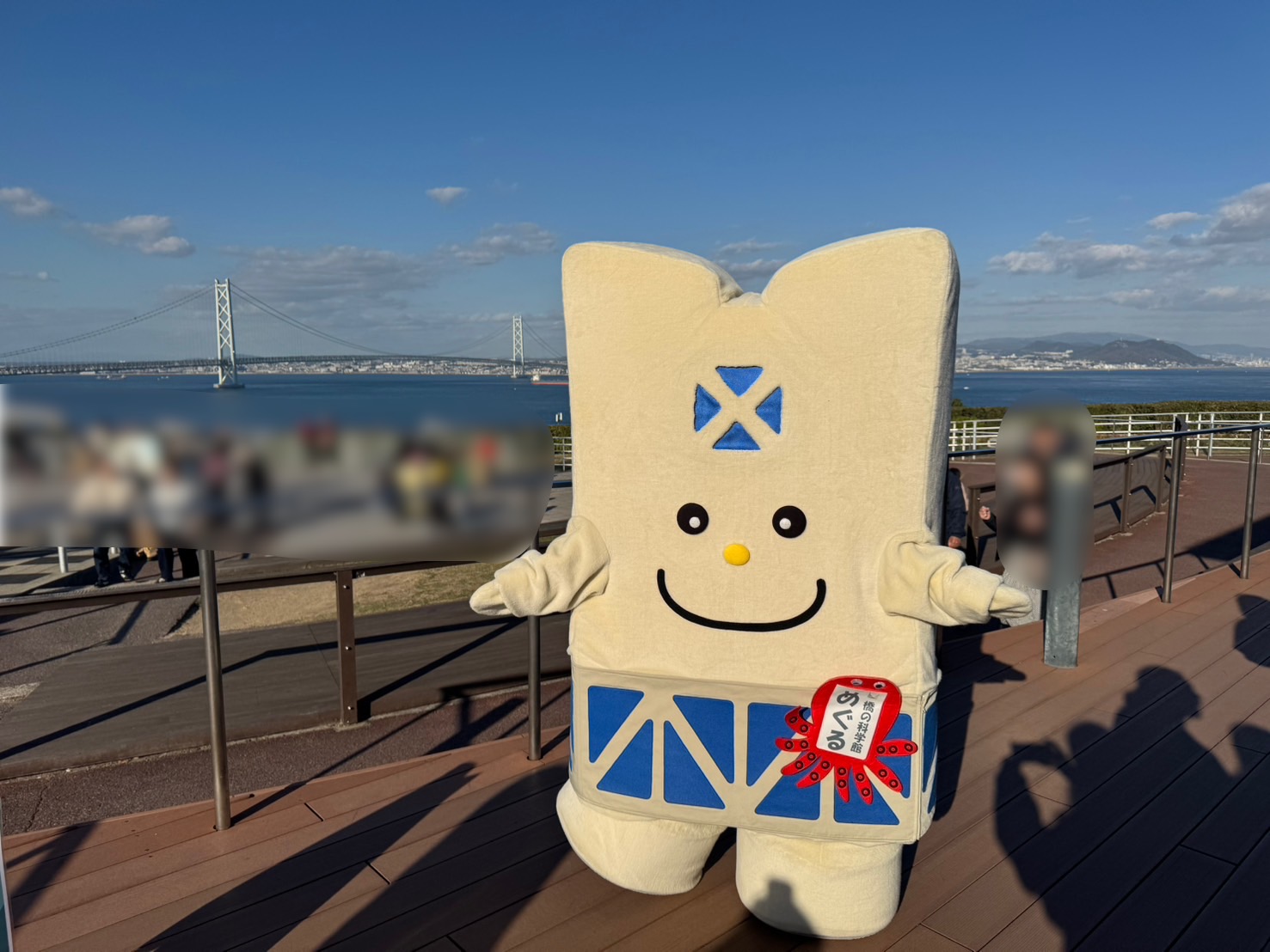 身体は明石海峡大橋の主塔、お腹は橋桁がモチーフ。